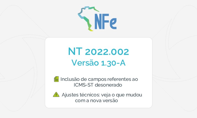 NF-e – NT 2022.002 v1.30a: Correções pontuais e novos campos para o ICMS-ST desonerado